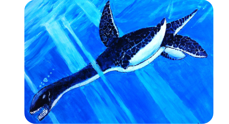 Plesiosaurs are extinct marine reptiles that existed at the same time as the dinosaurs, during the
