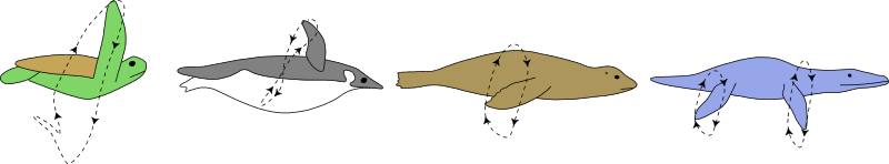 All plesiosaurs would have used their flippers in a motion that is primarily up-and-down (dorso-ventral) rather than forward-back. This motion is similar to the stroke of a turtle, penguin or sea lion, and can be modelled as simple harmonic motion.
