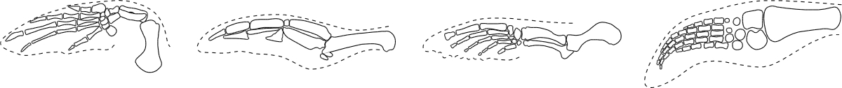 The plesiosaur flippers are modified limbs specialised for aquatic locomotion. As only the bones remain as fossils, the soft tissue such as the muscles and skin must be reconstructed to obtain the shape. This was done by comparing the flippers of the plesiosaur to extant animals that swim using flippers such as turtles, sea-lions, and penguins.