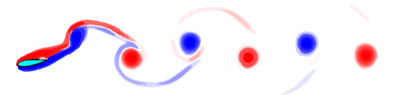 Flow visualisation reveals that the hind flipper has high performance (high thrust and efficiency) when it weaves in between the vortices that are shed from the fore flipper...