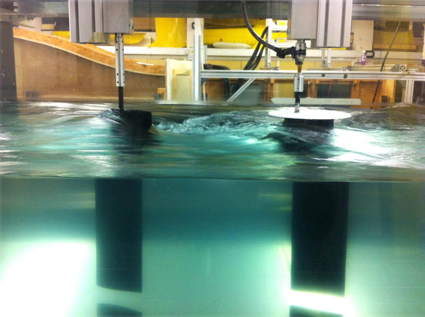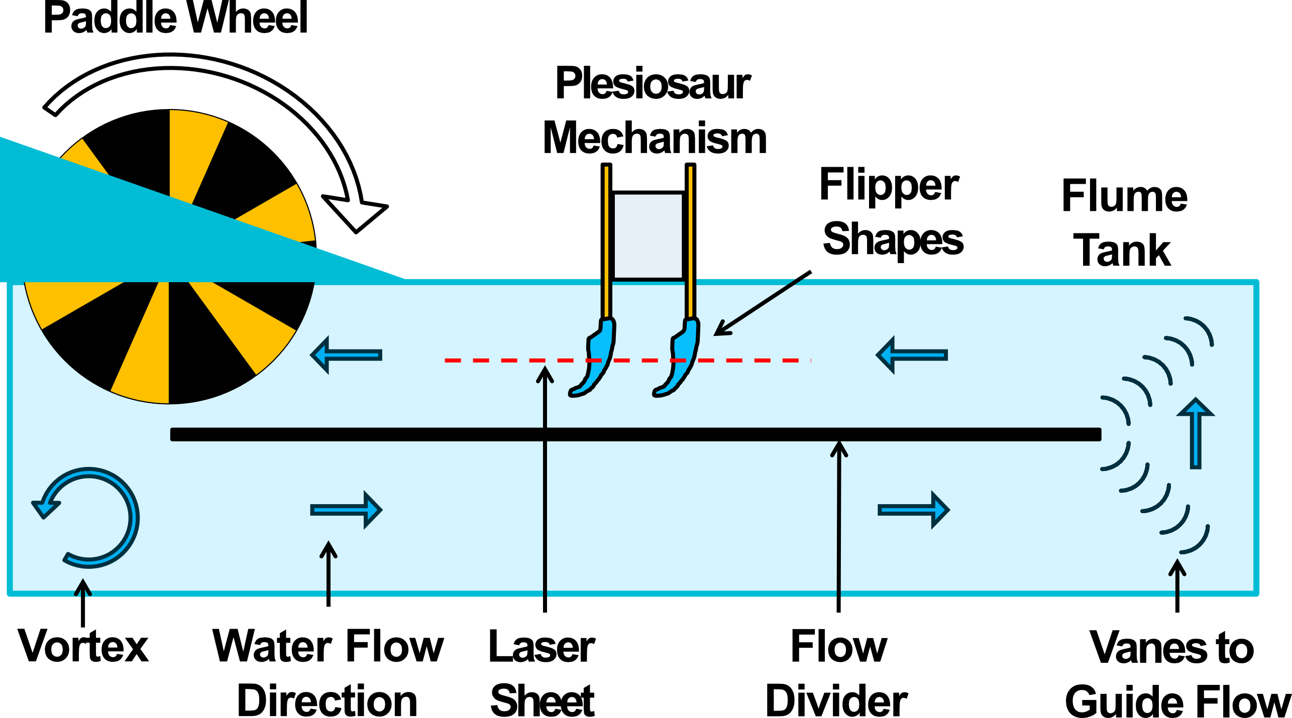 A ‘robotic plesiosaur’ that provides two axes of motion to each flipper (pitch and heave) was built on top of a flume tank.